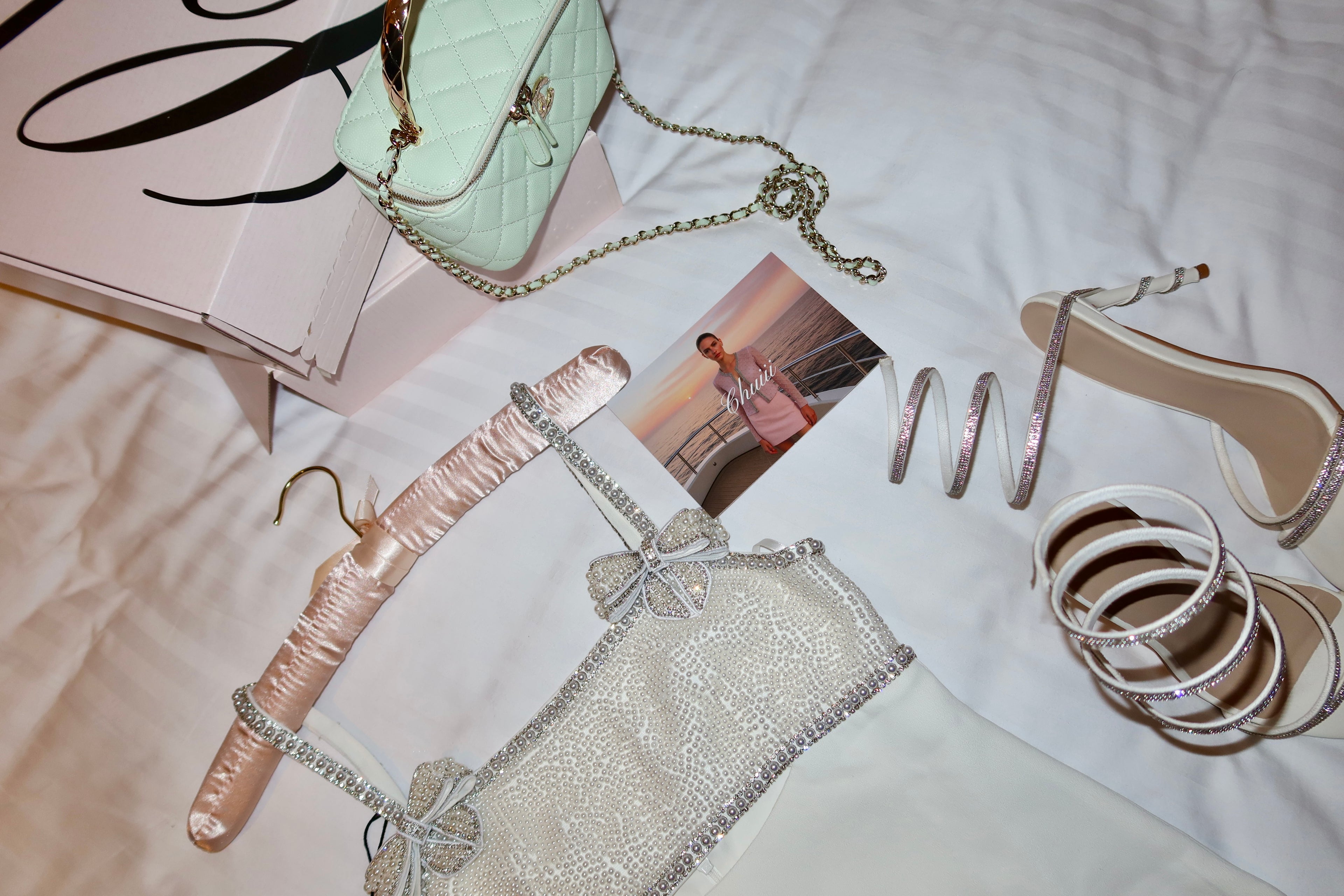WHITE FLORAL APPLIQUÉ MINI DRESS